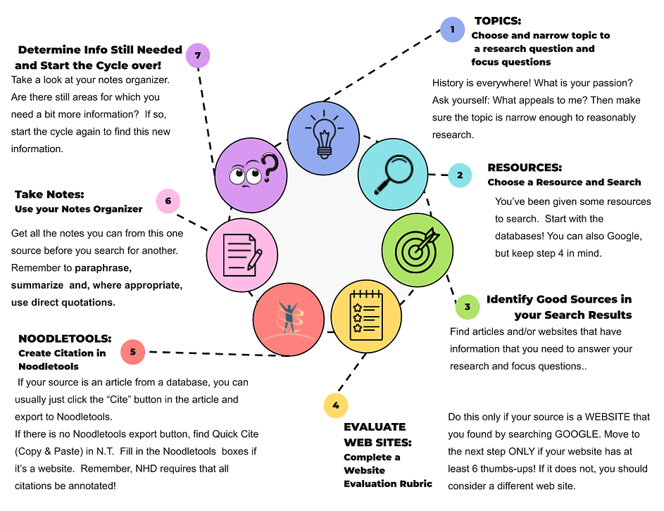 The graphic below shows the steps in the research cycle, tailored to your NHD project.
